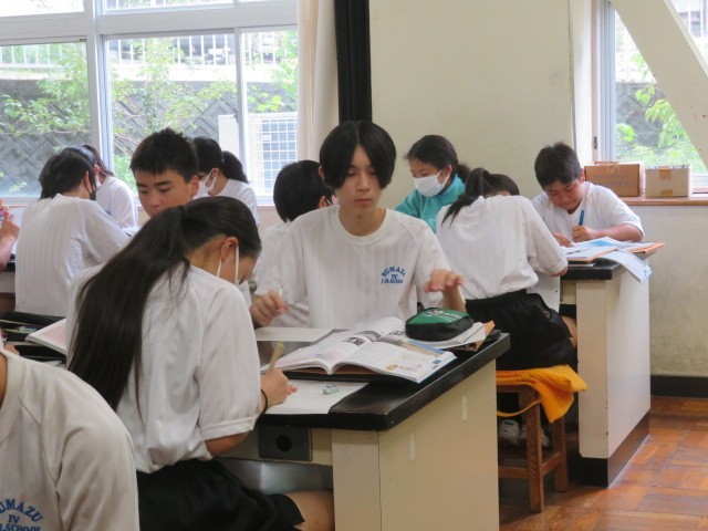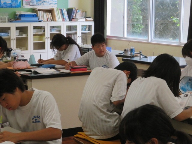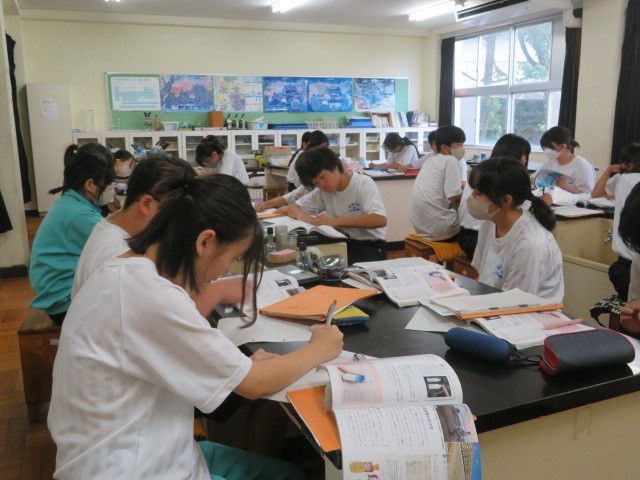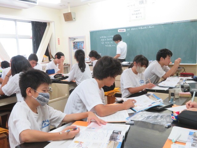 1年B組の理科の時間です。物質それぞれの沸点と融点から、その物質の状態を確認していきます。