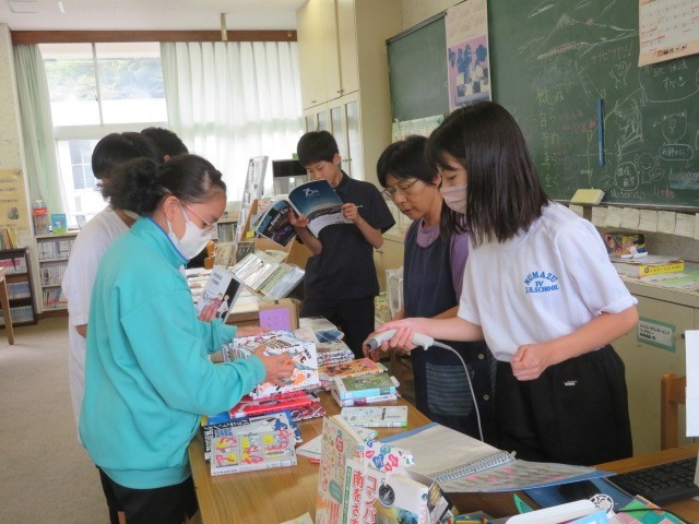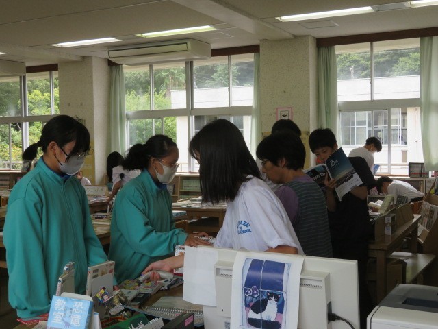 休み時間の図書館に1年生が急いで足を運んできました。新刊や読み進めたい本などを手にしていました。