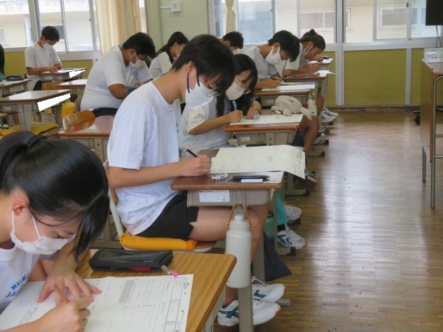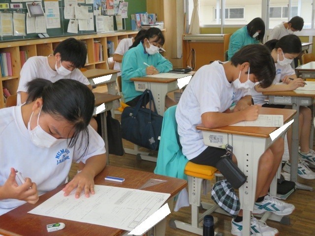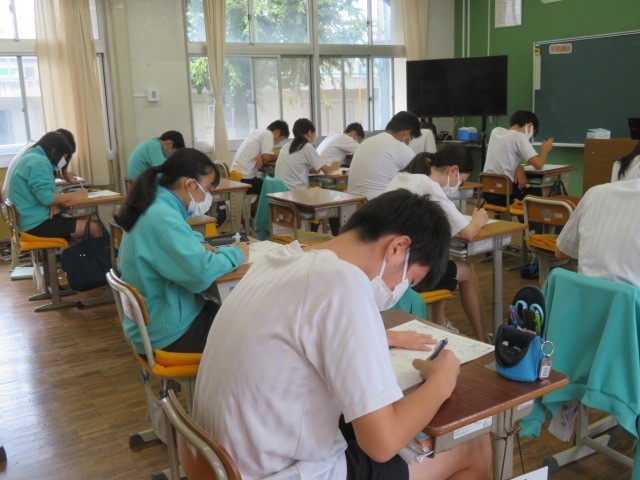 3年C組の数学の時間です。二次関数の学習診断に取り組んでいます。
