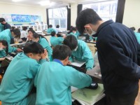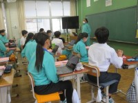 2年B組の保健体育の時間です。バトンパスをいかに素早くスムーズに行うことができるか練習に取り組んでいました。