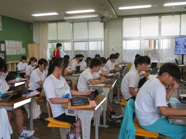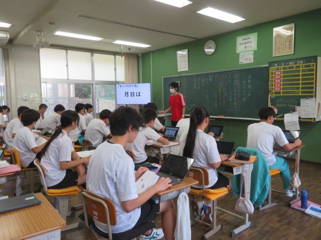 3年A組の国語の時間です。『奥の細道』の学習を進めています。漫画も取り入れながらの学習は、わかりやすそうです。