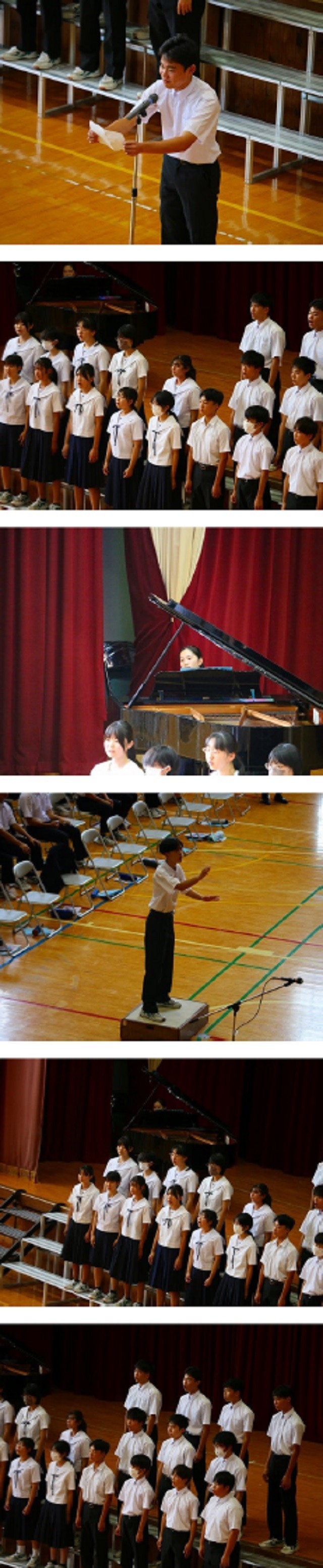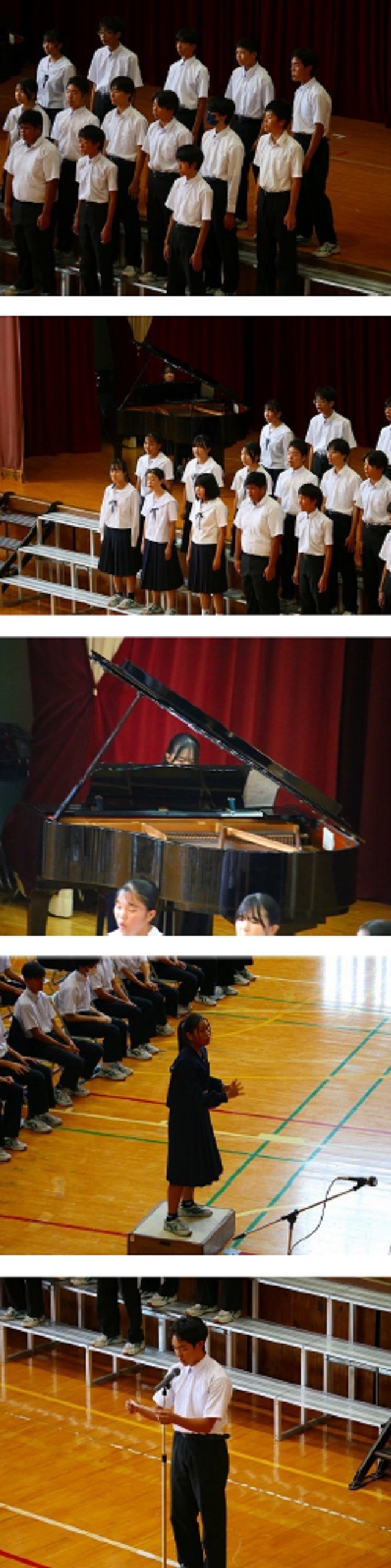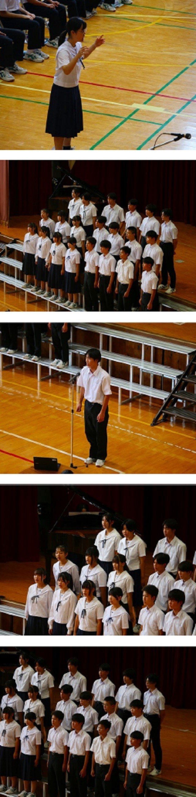 合唱コンクール3年生。どのクラスもとても素晴らしい合唱を披露しました。各パートの音がきれいに調和を保ち、体育館に美しい調べが流れました。