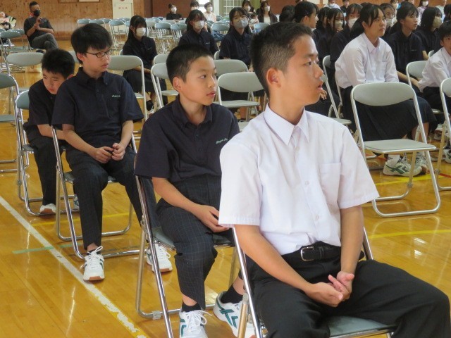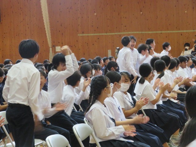 各学年の優秀賞が発表されると、歓喜の声やお互いをたたえ合う四中生の姿が見られました。