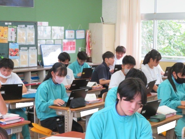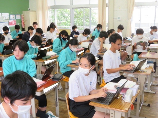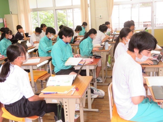 2年A組の国語の時間です。平家物語、敦盛の最期の学習をしています。