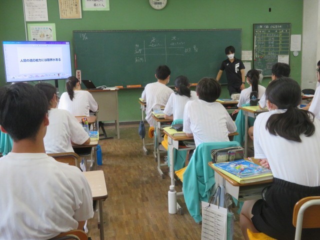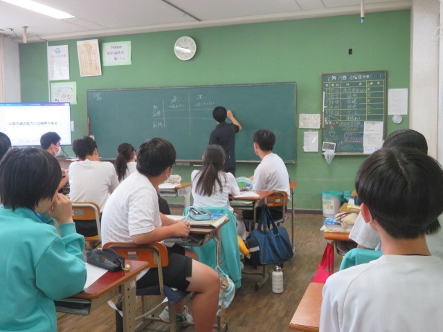 3年B組の保健体育の時間です。気温による血管の拡張や収縮などについて学習しています。