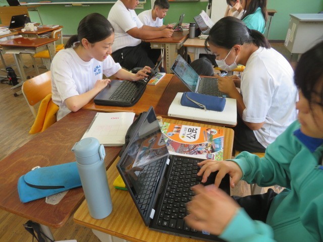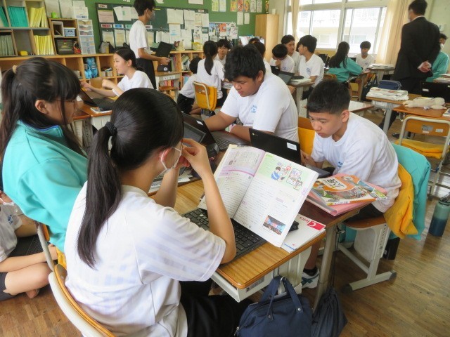 3年C組の社会の時間です。政治・マスメディアについての学習を進めています。