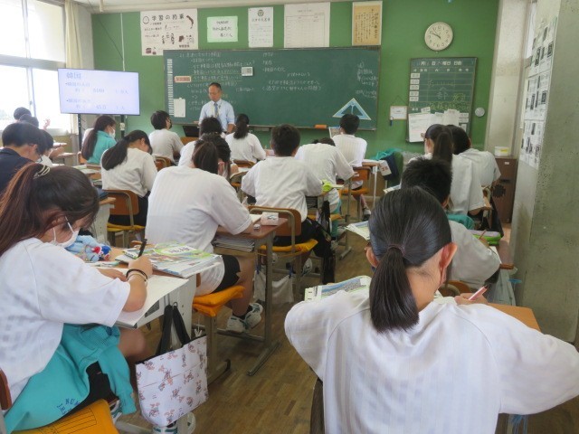 1年B組の社会の時間です。隣国である大韓民国についての学習を進めています。