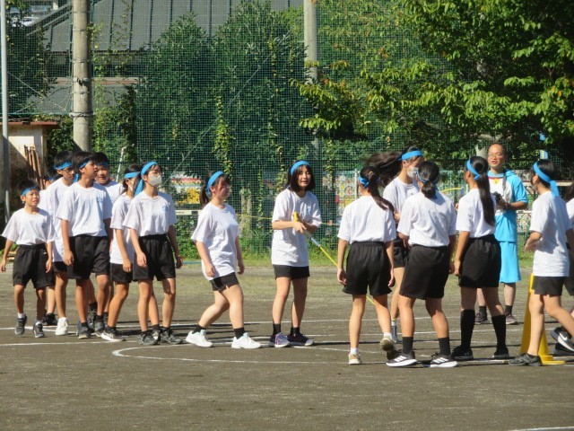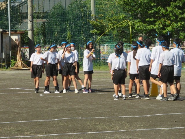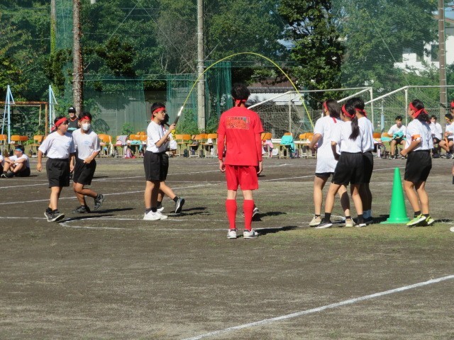1年生学年種目 8の字跳びの様子です。タイミングを合わせて次々に跳んでいきます。