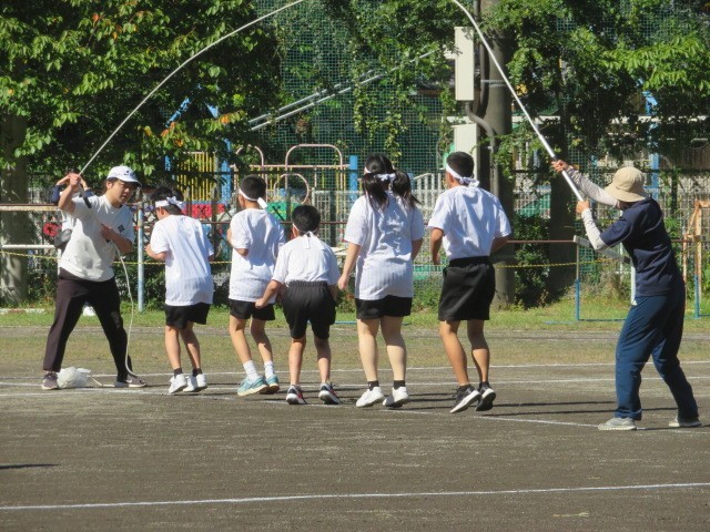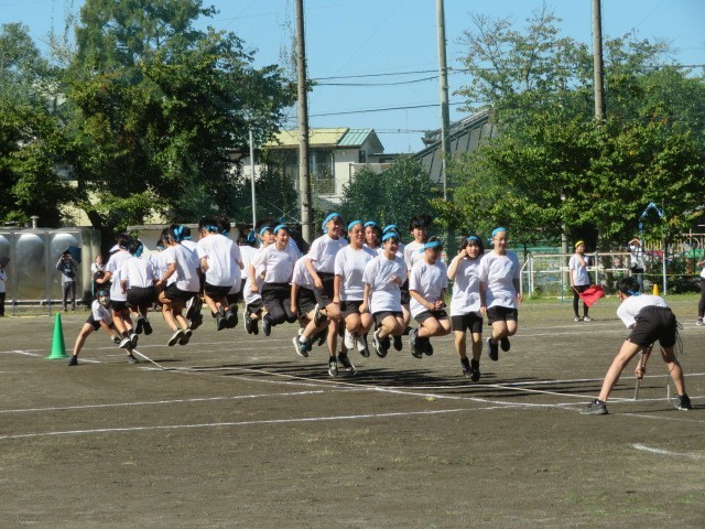 2年生、E組の大縄跳びの様子です。声をあわせて、心を合わせて、ジャンプを合わせて跳び続けます。