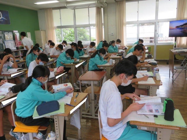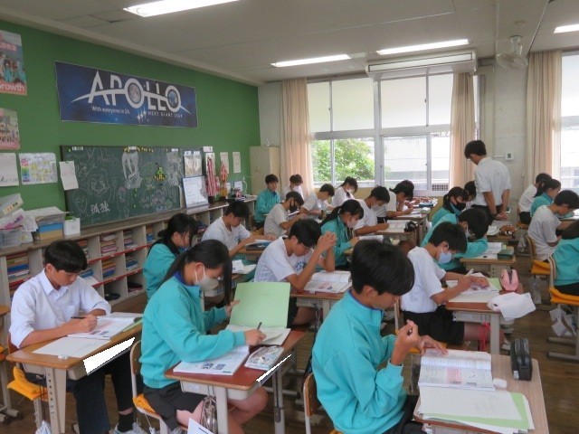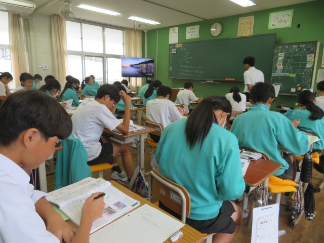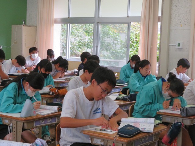 2年A組の理科の時間です。「筋肉」について学習しています。普段意識することなく動かしている身体ですが、筋肉を収縮させることで、身体を動かしています。