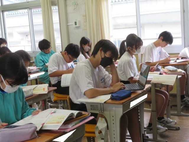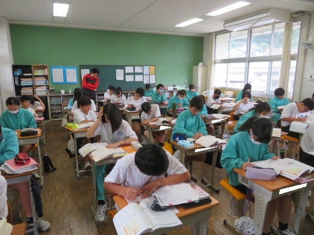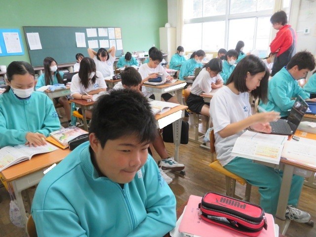 1年B組の国語の時間です。「詩」の創作活動に取り組んでいます。題材・テーマをじっくり考えている様子が見られました。