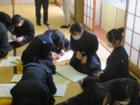 3年A組の理科の時間です。「物体を動かす際に、道具を利用しても仕事の量は変わらない」という仕事の原理を用いて、問題を解いていました。