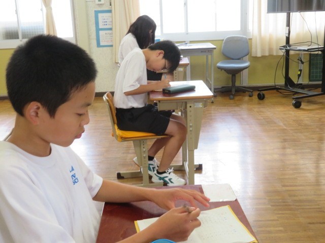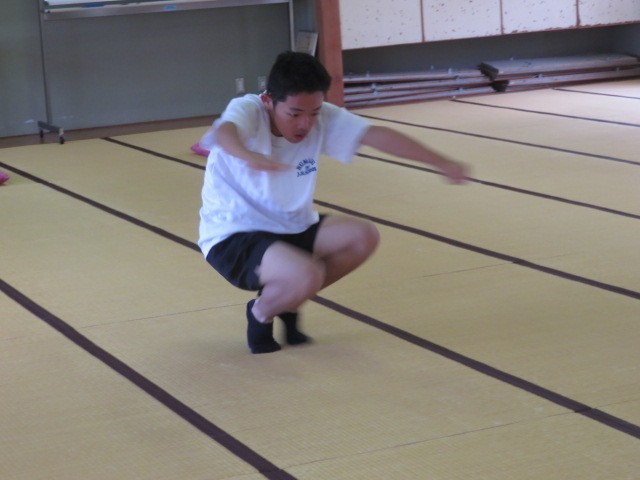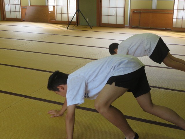 E組の朝トレの時間です。和室でいろいろな動きを取り入れて活動しました。タイムも新記録が出ている生徒さんもいました。一生懸命取り組んでいます。