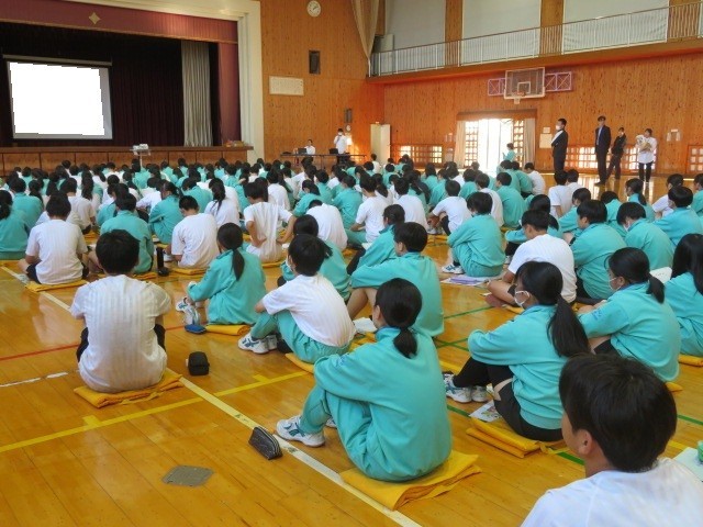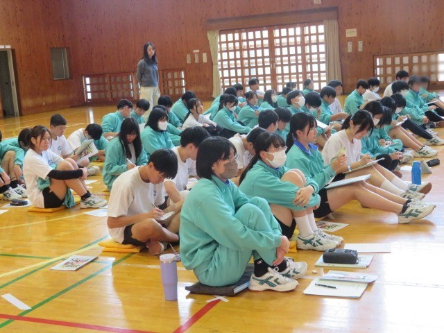 学校薬剤師の先生、沼津警察署生活安全課少年係の方にお越しいただき、薬学講座を行いました。医薬品・たばこ・酒についての正しい知識、覚醒剤、大麻等の薬物乱用、犯罪についてのお話を伺いました。正しい知識と正しい判断を持ち、今やるべきことを行う生活をしていくことについてお話をいただきました。
