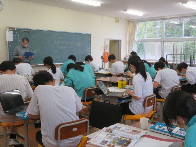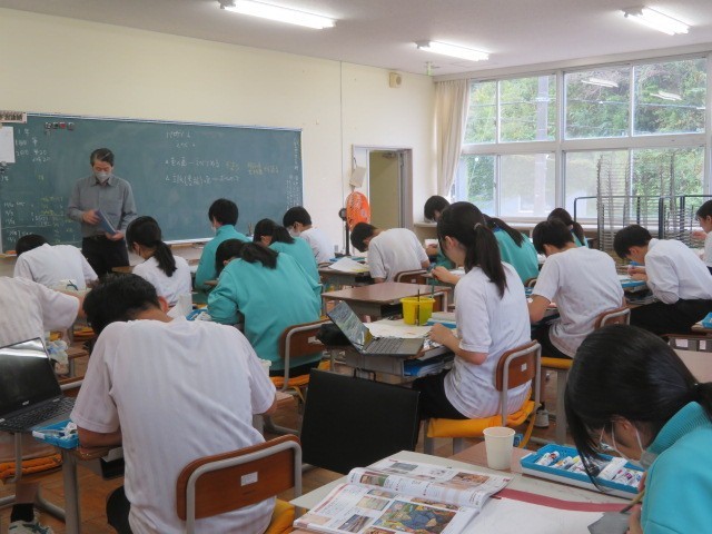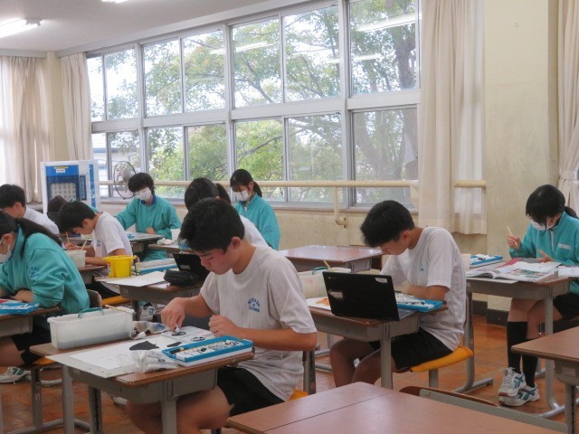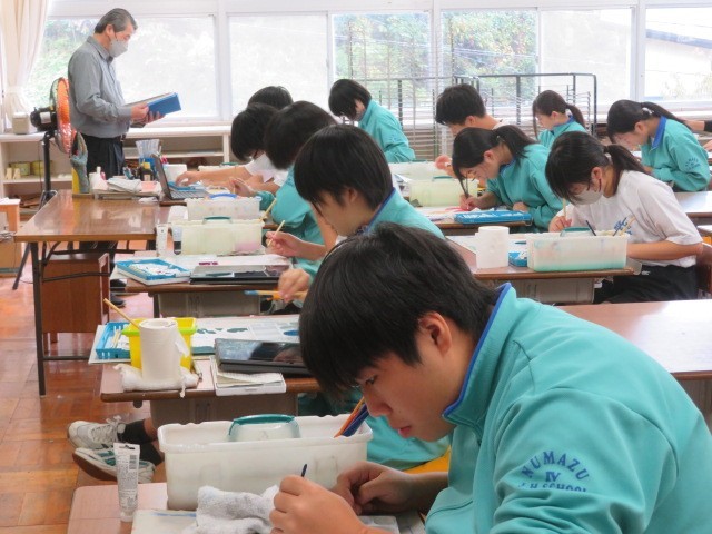 3年B組の美術の時間です。着彩が進んでいます。一歩一歩完成に近づいています。