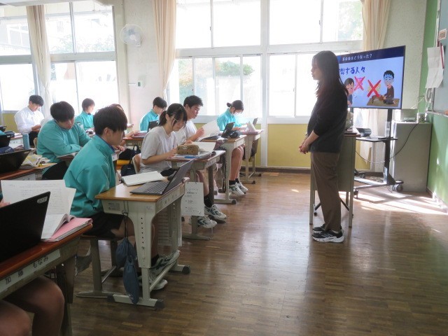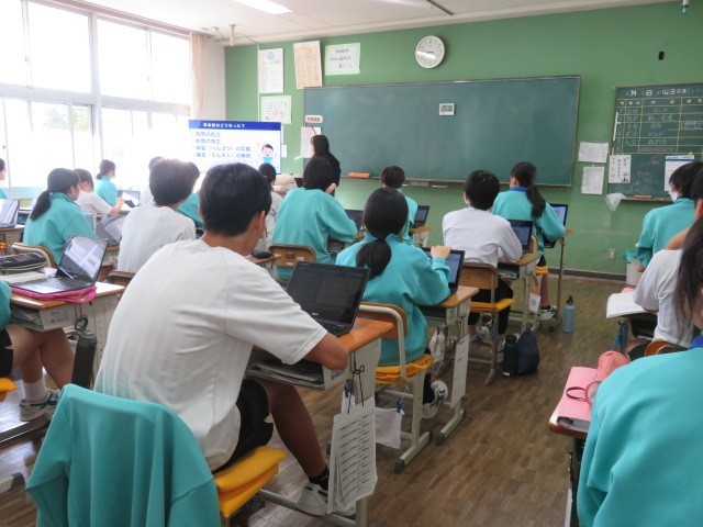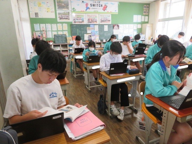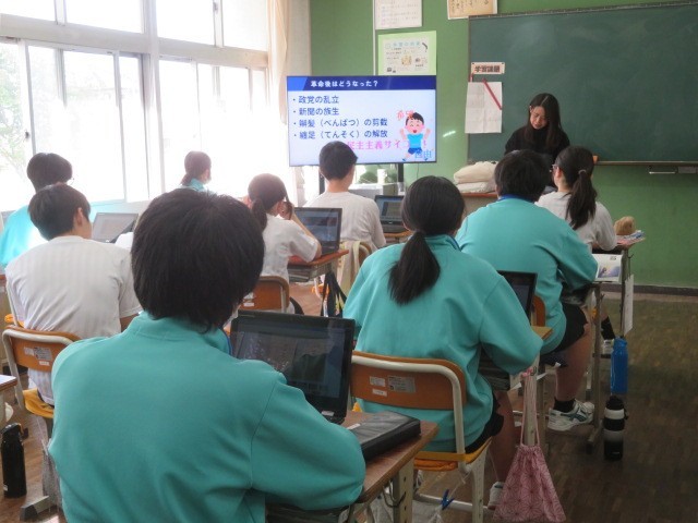 3年B組の国語の時間です。魯迅の『故郷』を学習する中で、歴史的背景となる辛亥革命前後の様子について学習しています。
