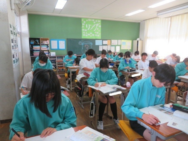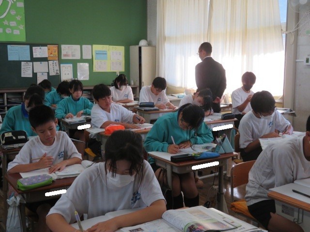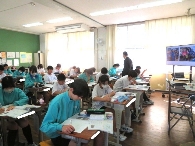 1年B組の社会の時間です。ヨーロッパの統合の動き、課題等「EU」についての学習を進めています。