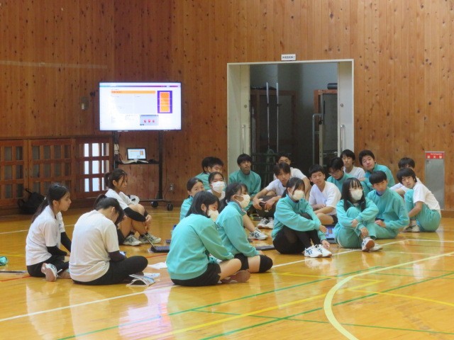 3年C組の保健体育の時間です。チームごとに作戦を考えることに備えています。