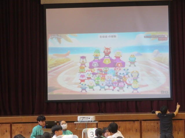 第2回四中杯が生徒集会で行われました。学力テスト翌日、テスト勉強の合間の時間を使いながら本部役員の皆さんが作り上げた問題の数々に、「borderless」なグループで挑戦しました。体育館の中は、クイズに挑戦する四中生の歓声で大きく盛り上がりました。