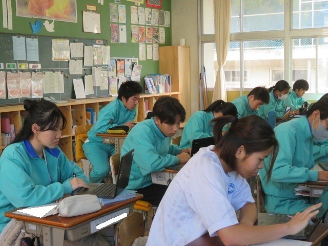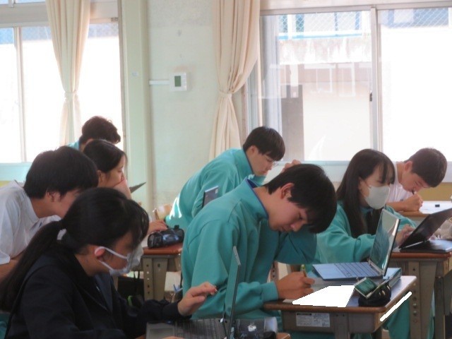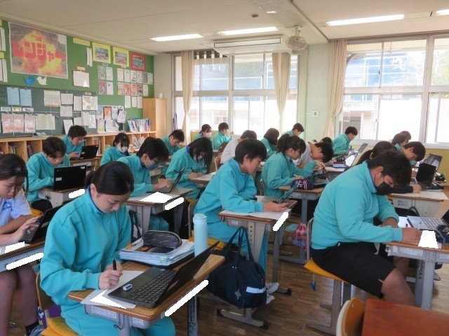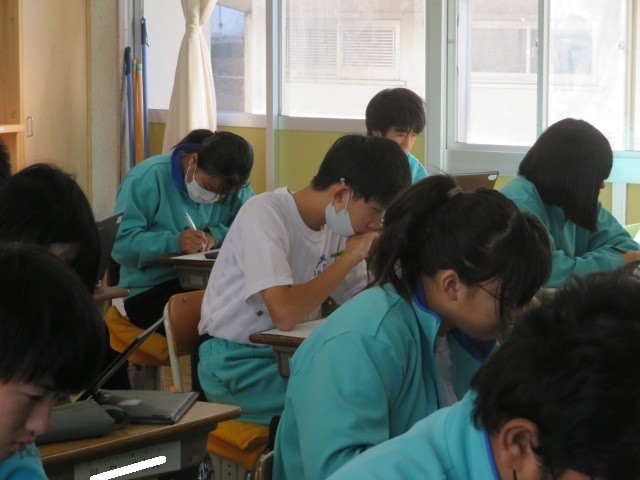 3年C組の理科の時間です。テストの振り返りを行い、確実に理解し身につけるように取り組んでいます。
