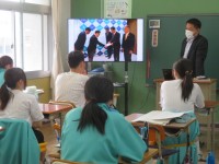 3年生の英語パフォーマンスデイの様子です。オンラインの画面越しに英会話を進めています。いろいろな話題で盛り上がっていました。