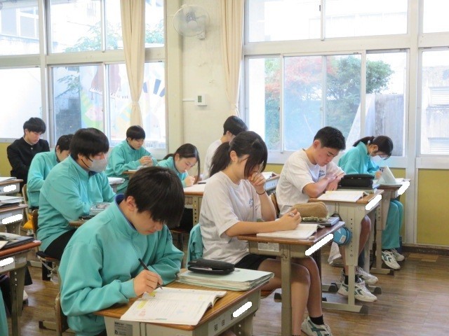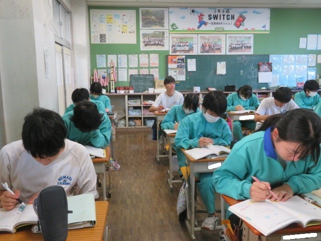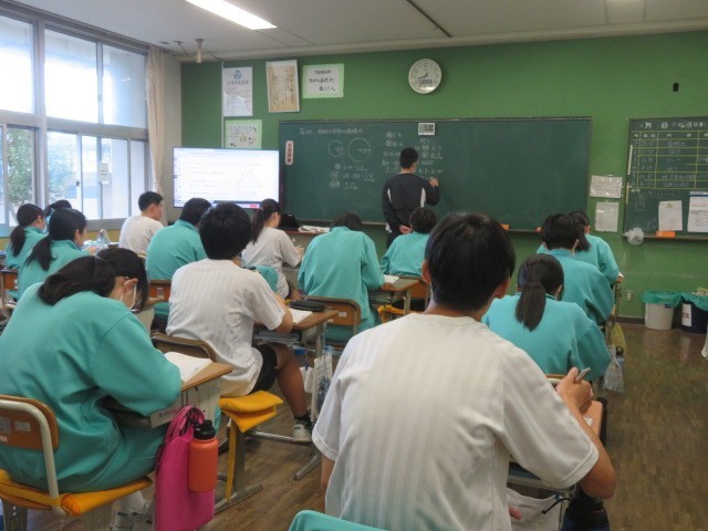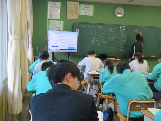 3年B組の数学の時間です。相似-「面積比」について学習しています。