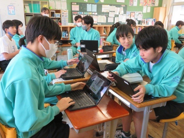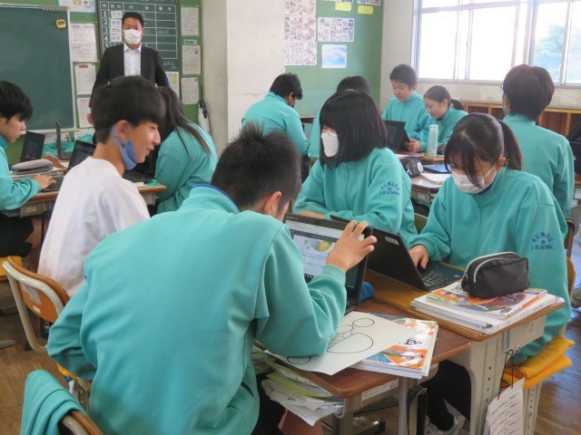 3年C組の社会の時間です。地方自治の学習を進める中で、「沼津市」について学習しています。