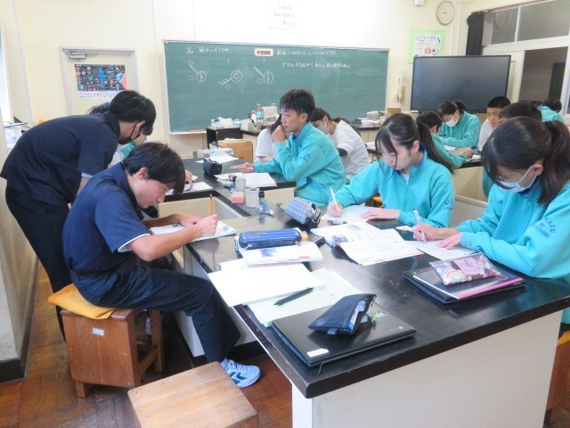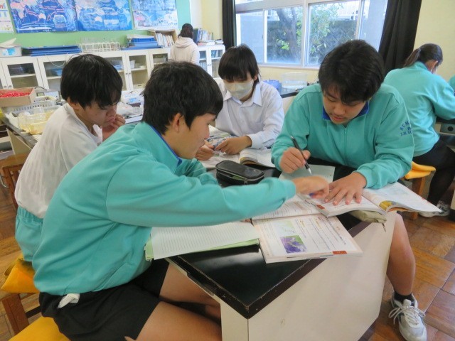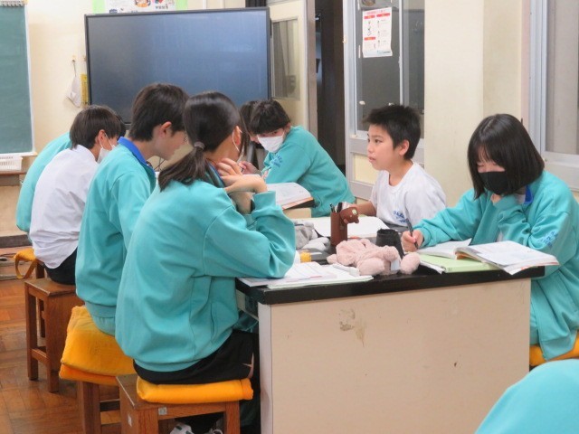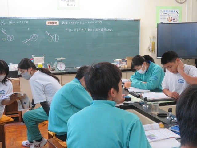 2年B組の理科の時間です。風はどのように吹くのか、グループで追究しています。