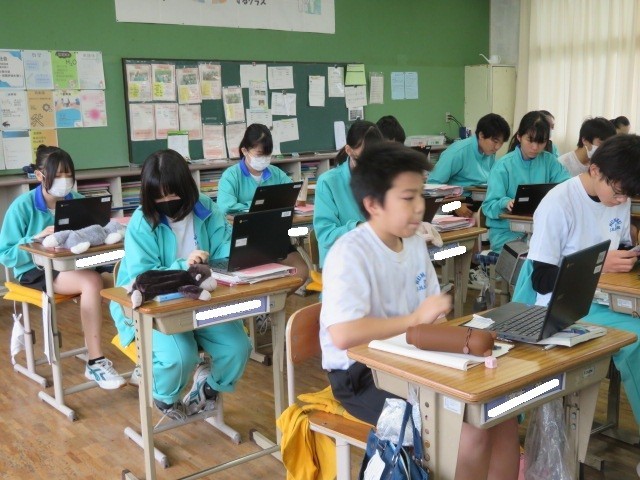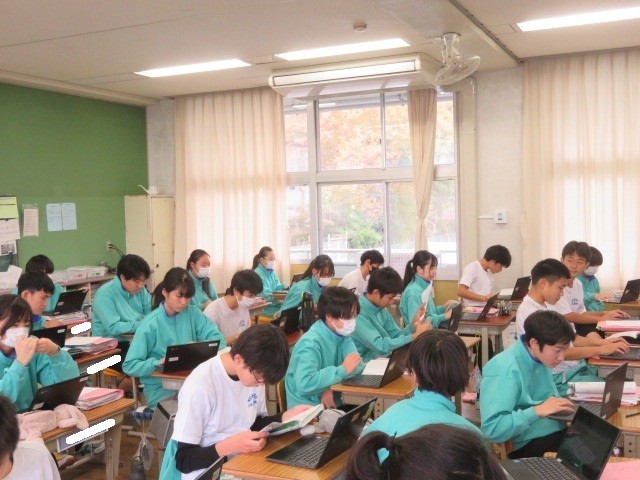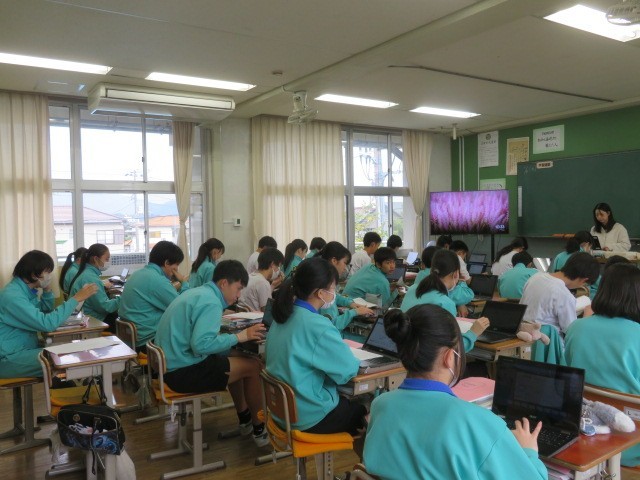 2年B組の国語の時間です。「漢詩」を学習しています。漢詩にあらわされ情景を考えていました。