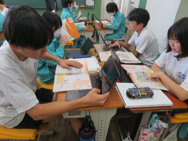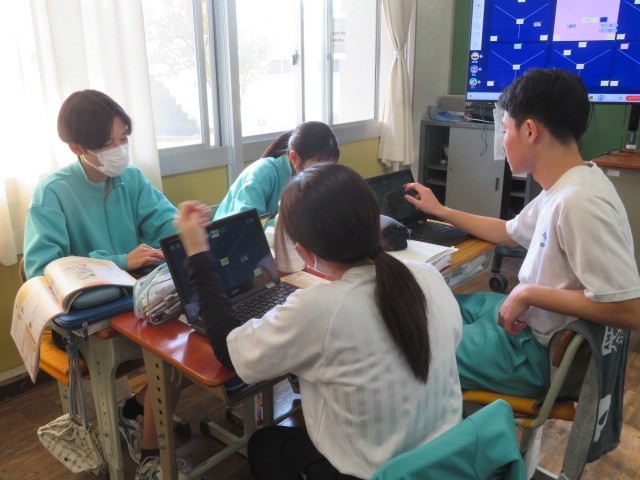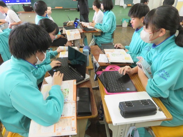 3年B組の社会の時間です。コンビニエンスストアーの出店にあたり、仮想の3つの都市のどこがよいか考えます。