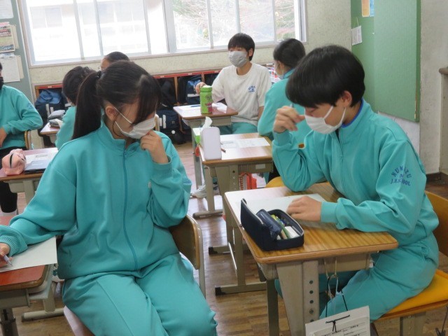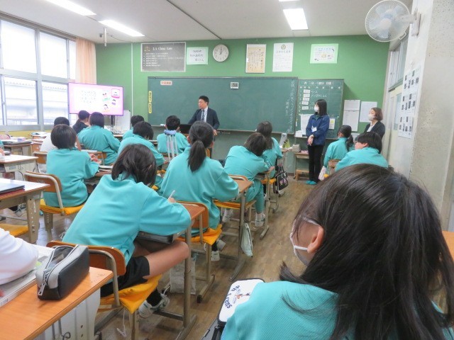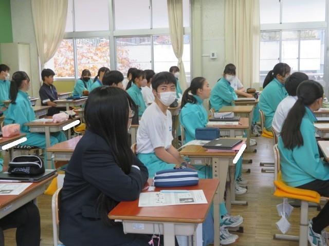 ストレスマネジメント講座の様子です。青少年教育センター、保健センターから講師の先生にお越しいただいて、ストレスとの上手な付き合いかを学習しました。2Aと1Aの講座の様子です。