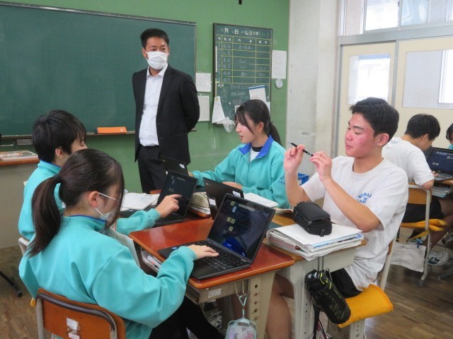 3年B組の社会の時間です。消費者の権利について、思考ツールを用いてタブレット上でまとめていきます。