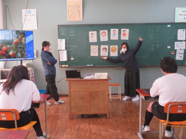 E組の英語の時間です。クリスマスに関係する英単語を大文字、小文字、スペースなどに気をつけながら探しました。また、自分の気持ちや状態を示す英語をイラスト・文字・言葉で学んでいます。