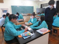 1年A組の英語の時間です。Unit5,まずは英単語から確認です。