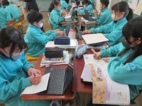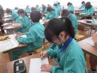 1年B組の音楽の時間です。教科書に掲載されているいろいろな楽曲にリコーダーで挑戦です。