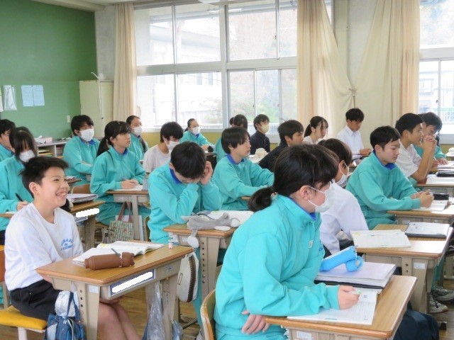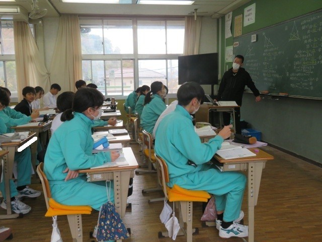 2年B組の数学の時間です。直角三角形の合同条件を利用し、証明問題に取り組んでいます。