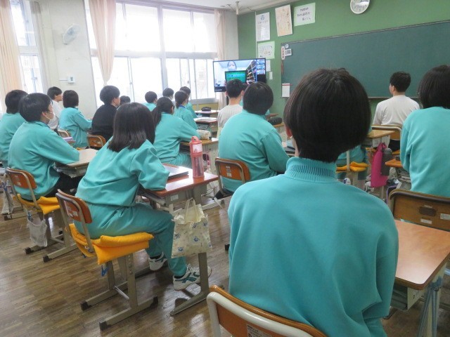 3年生の学年集会が、オンラインで行われました。中学校生活の締めくくり、次のステップへの足場を固めていくための冬休み。気を緩めることなく「油断大敵」、そして主任の先生から、仲間の頑張りをリスペクし称えあえる姿、こつこつと粘り強く歩み続けることの大切さ、不安がらず進んでいく勇気についてお話がありました。チーム四中で最後まで頑張りましょうという言葉をしっかり受け止めていたようです。