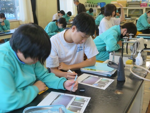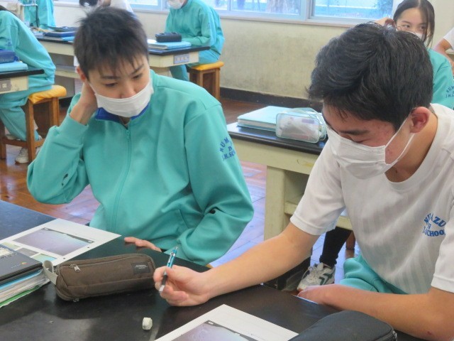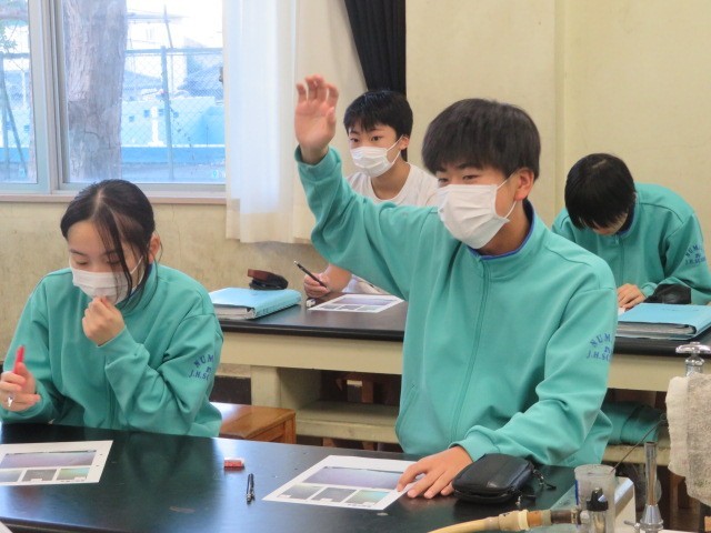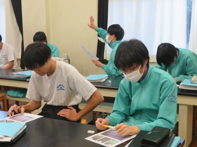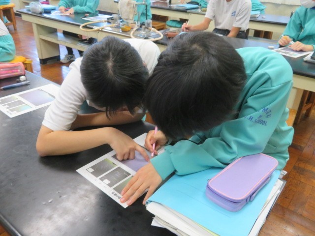 3年B組の理科の時間です。冬の星空の日修運動の軌跡を結び付けて、北斗七星とカシオペヤ座を見つけていました。この星の中から星座を考えたのはすごいという声も聞こえてきました。