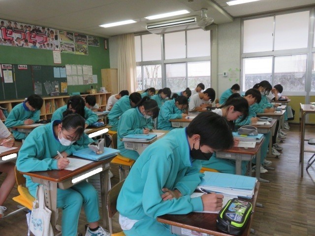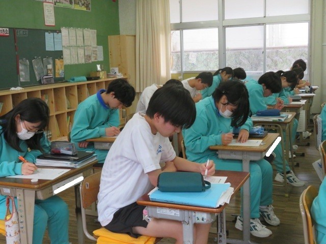 3年A組の理科の時間です。自転・公転など天体の学習問題に取り組んでいます。