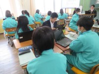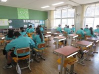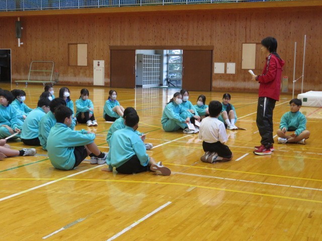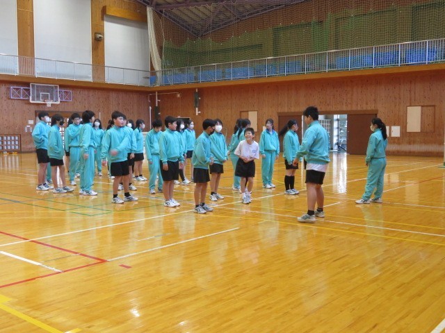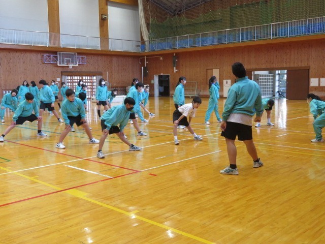 1年B組の保健体育の時間です。健康手帳の記載を終え、準備体操をして走高跳びに挑戦です。