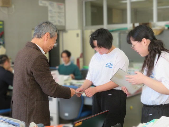 2月20日に予定しているE組の生徒さんが作業学習で製作した製品の販売についての招待状を配付しています。作業、案内状づくりを頑張ってきました。授業公開日となっております。当日は、8時30分から11時15分までE1での開催となりますが、授業公開日となっておりますので、お立ち寄りいただきE組の生徒の皆さんの努力の成果を御覧ください。