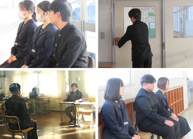 3年生面接練習の一日目です。廊下で面接の順番を待つ様子にも緊張感があふれています。試験当日では、落ち着いて面接に臨めるように振り返りをしっかりしておきたいです。