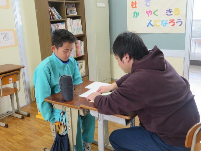 E組では、3年生が受検に向けての指導を受けています。一つ一つしっかりと確認をしています。