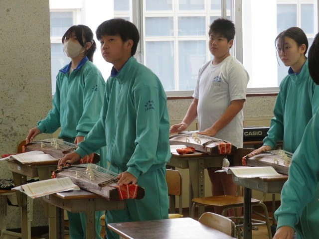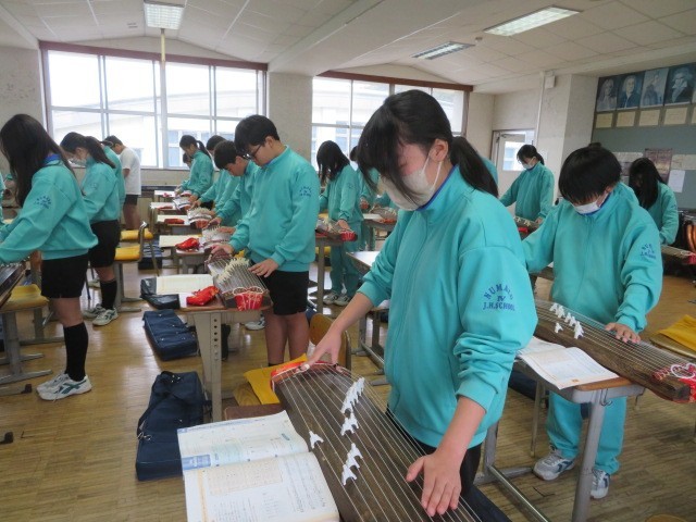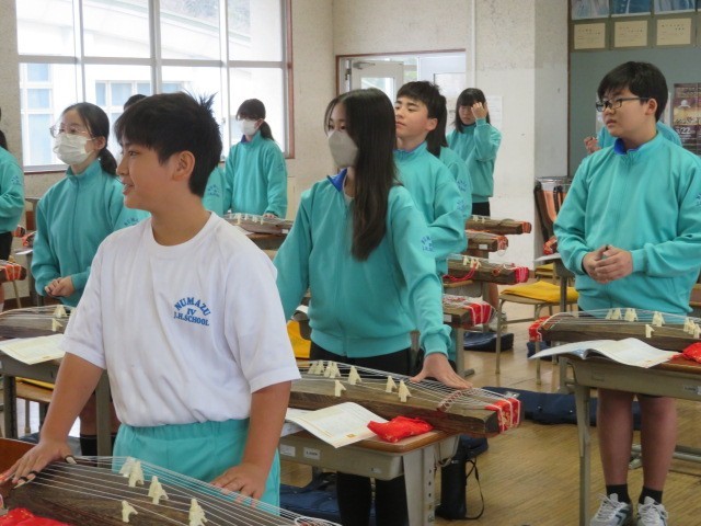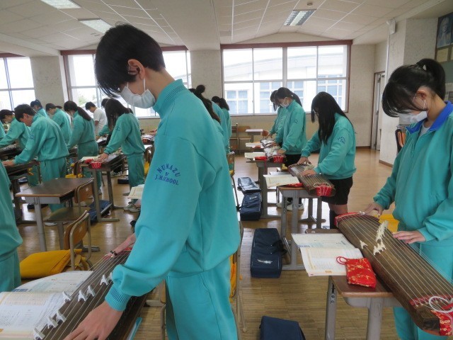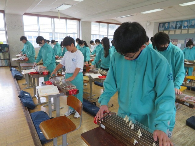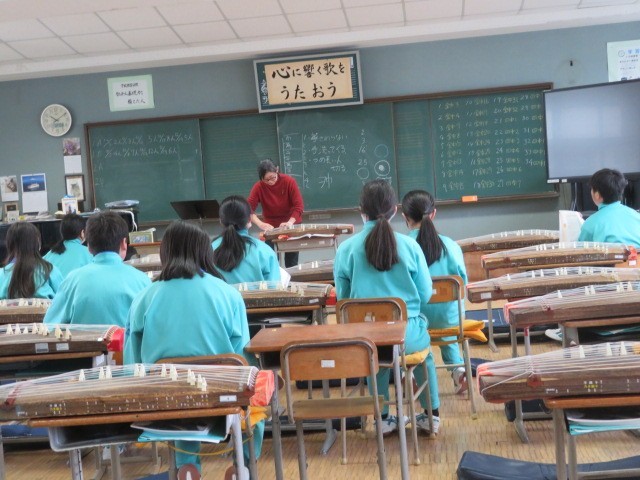 1年B組の音楽の時間です。琴の美しい調べが響いてきます。懐かしい響きが新春を想起させます。
