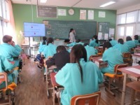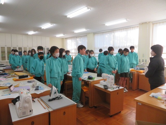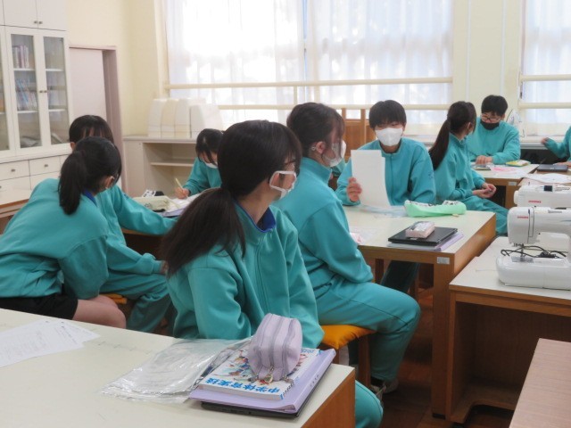 1年B組の家庭科の時間です。ティッシュケースカバーも多くの人が完成しました。自宅で活用できそうです。
