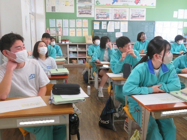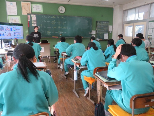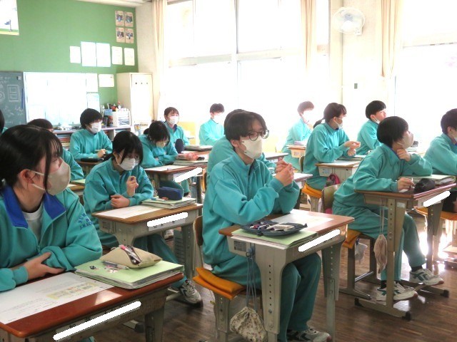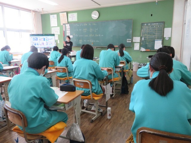 3年B組の英語の時間です。Unit7-2の学習、リスニングにも挑戦しています。生徒さんの英語を聴く力のすごさを感じます。