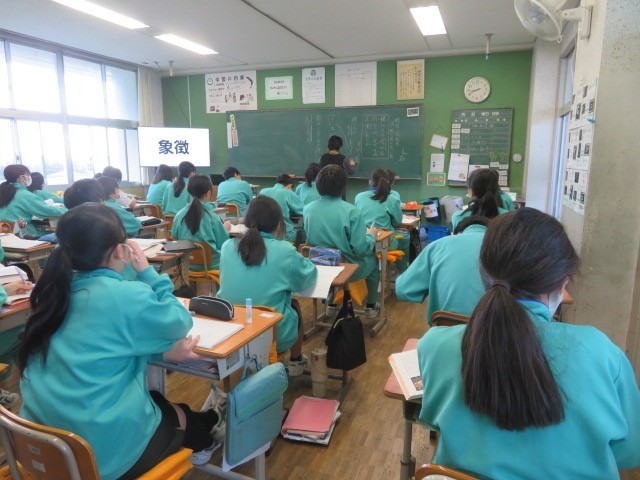 1年B組の国語の時間です。『少年の日の思い出』…象徴をキーワードに意見を交換しています。