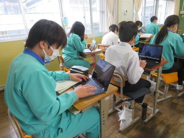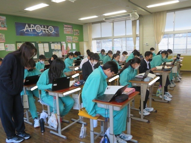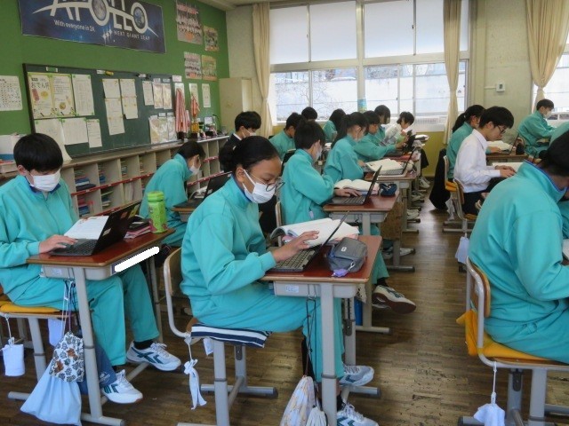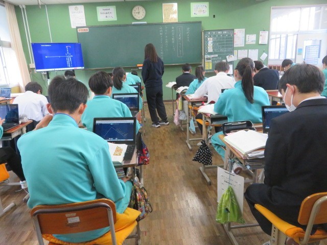 2年A組の国語の時間です。『走れメロス』について、ストーリーの流れをプロットしています。