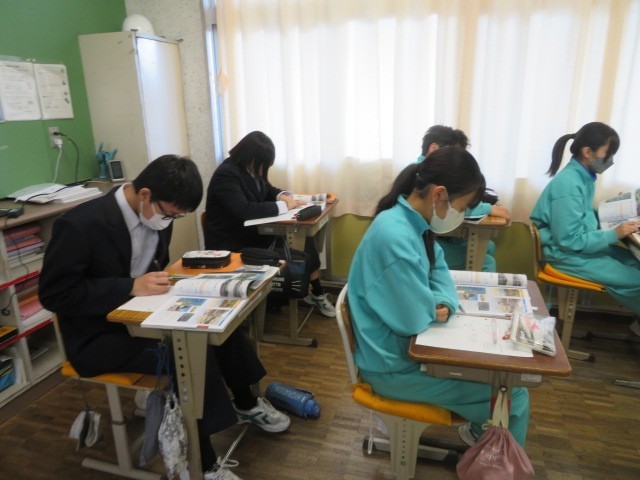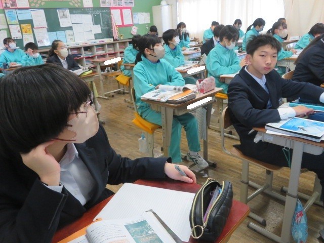 1年A組の理科の時間です。大地の変化についての学習です。ミルフィーユのように形作られた地層の変化を学習していきます。