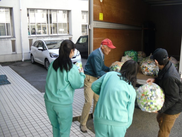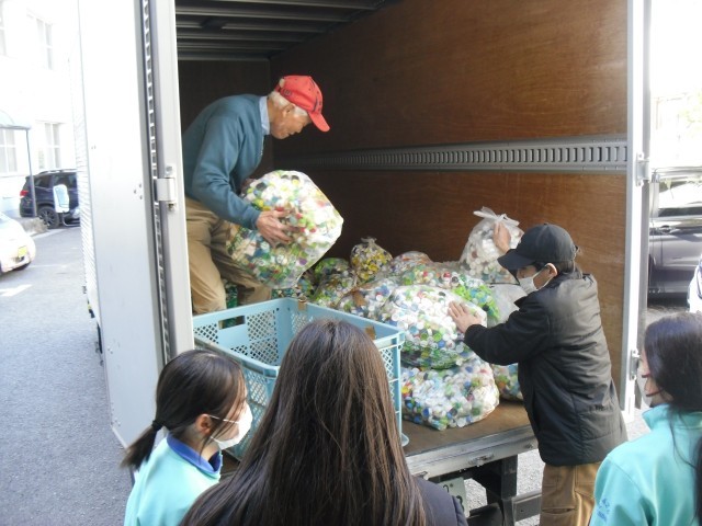 生徒会・美化委員会の呼びかけで回収したペットボトルキャップを「ウィ サポート ゆう」様にお渡ししました。